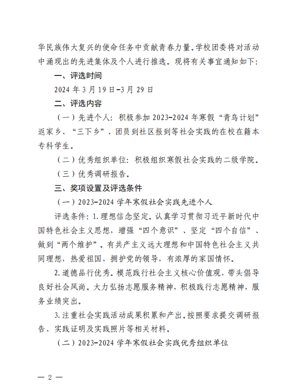 关于做好 2023-2024 年寒假全国大学生“返家 乡”社会实践活动总结工作的通知