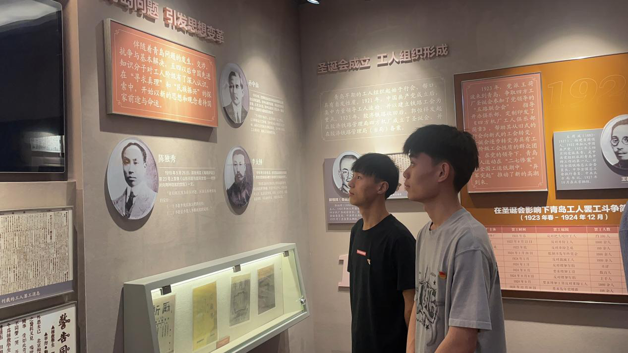 百年征程波澜壮阔,百年成就催人奋进。青岛工人运动的百年征程,让在场的同学们感受到了工人阶级的伟大和震撼。随后,大家在虚拟影院观看了展示青岛工运百年风华的影片,深入学习了解了青岛工人运动的光辉历史和改革开放带来的的巨大成就。