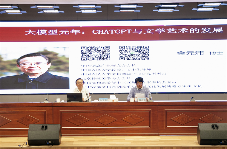 金教授强调指出,大模型正在开启一个新的时代。大模型无所不能,它可以写各类学术论文、创意写作、商业写作、个人简历甚至演讲稿、小说。大模型掀起了新时代的巨大浪潮,新智能革命更为建设高质量的文化中国提供了新质生产力。金教授将技术链接文艺,指出目前ChatGPT等人工智能是无法取代作家的,创作者只有在与历史、社会、时代的互动中产生真实的连接,才能创作出无愧于时代和民族的伟大作品。