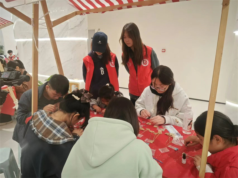 随着午后暖阳的照耀,非遗活动正式拉开序幕。志愿者们以温暖的笑容迎接每一位访客,他们的专业素养与团队协作精神在活动中得到了充分展现,不仅确保了活动的流畅进行,更以实际行动诠释了影视学院学子投身志愿服务的崇高精神,让每位参与者的脸上都洋溢着满意的笑容,满载而归。