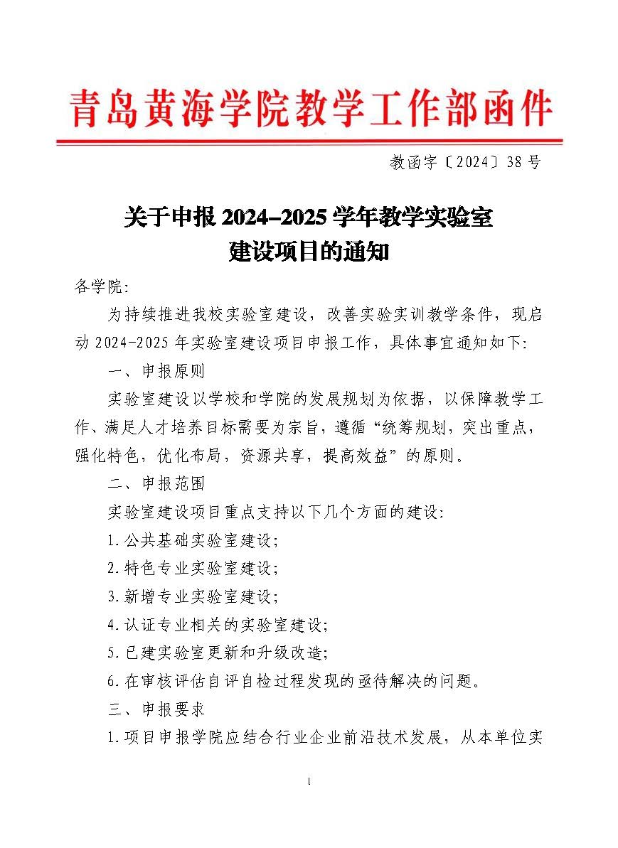 申报2024-2025学年教学实验室建设项目通知