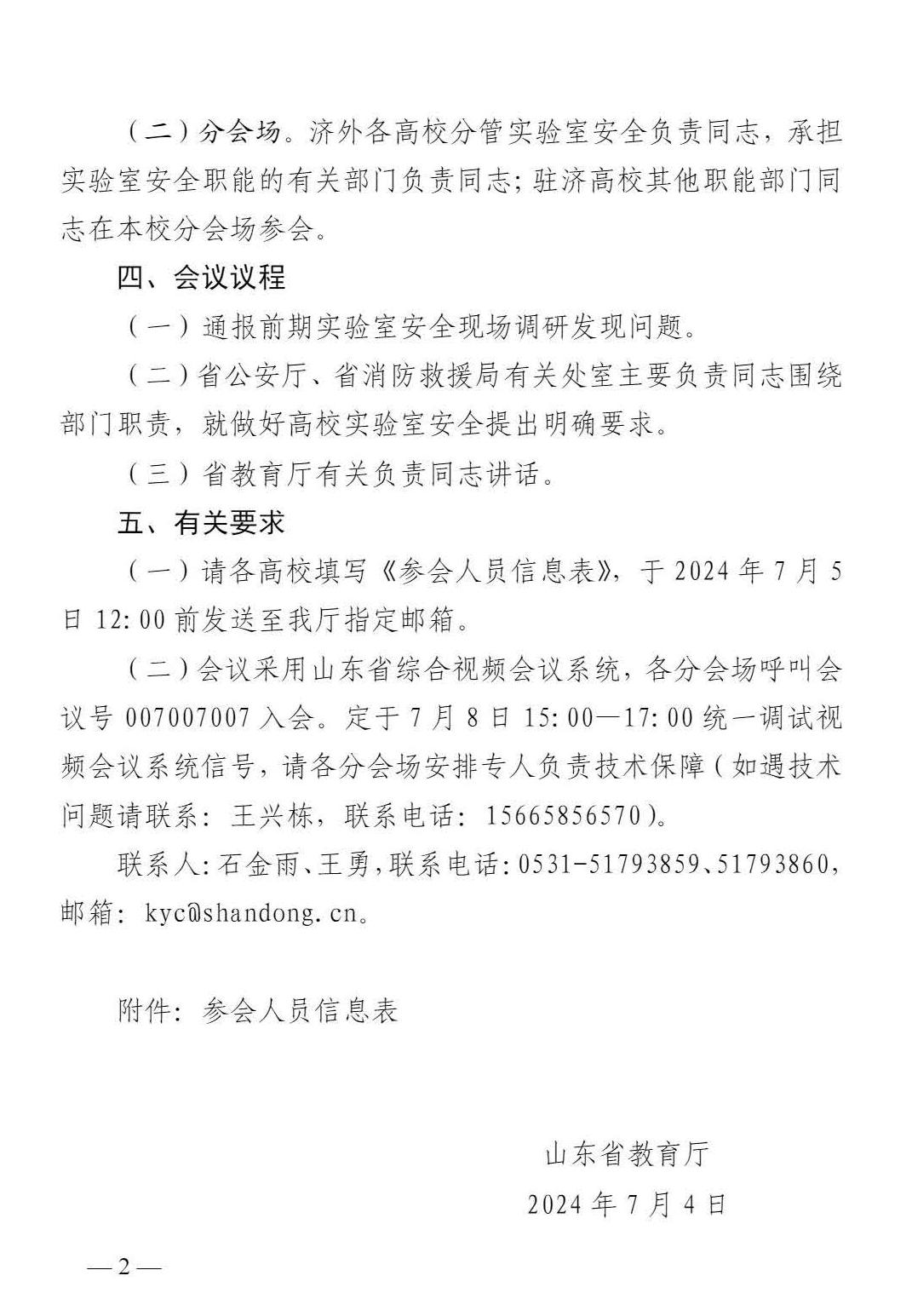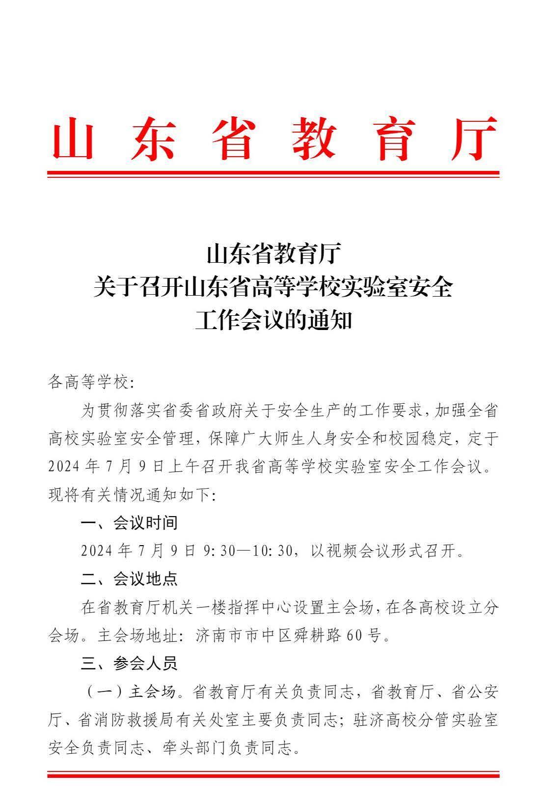 转发:山东省教育厅关于召开山东省高等学校实验室安全工作会议的通知