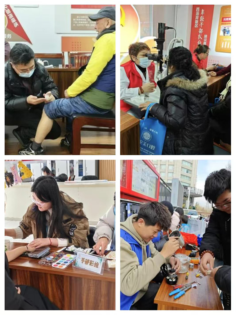 活动现场热闹非凡,各类便民服务摊位琳琅满目。小家电免费维修、眼科口腔健康义诊、爱心义剪等服务项目应有尽有,满足了社区居民的多样化需求。尤为引人注目的是手部彩绘摊位,影视学院志愿者们用五彩斑斓的颜料,在居民们的手上绘制出一幅幅精美的图案。这些图案不仅展现了艺术的魅力,更传递了一份来自志愿者们的深情厚谊与温暖关怀。通过这些服务,居民们的燃眉之急得以解决,党员与居民之间的距离也进一步拉近。邻里之情在互帮互助中得以升华,雷锋精神也在这一次次的志愿服务中得到了生动的诠释与传承。