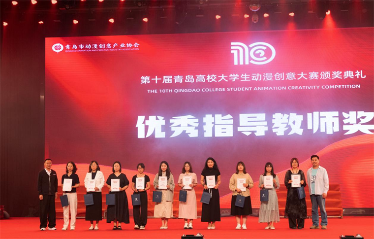 在热烈的掌声中,第一轮颁奖开始,优秀毕业设计作品奖、优秀教学成果奖等奖项逐一揭晓,获奖者上台领奖,脸上洋溢着自豪与喜悦。紧接着,第二轮、第三轮颁奖分别颁发了优秀指导老师奖和第十届青岛高校大学生动漫创意大赛奖项,获奖者们用他们的才华与努力,赢得了属于自己的荣誉。