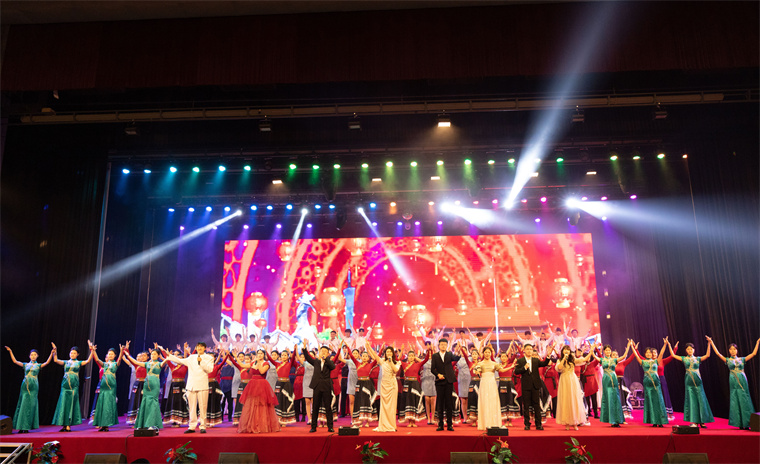 晚会中,舞蹈《草原牧马人》舞姿灵动,展现牧马人豪迈与草原的壮美,充满活力,令人陶醉,是草原风情的完美诠释。音诗画《中国之梦》将艺术与爱国情怀完美融合,播音与主持艺术专业学生的深情表演,让在场的每一个人都感受到了中国梦的力量。最后,大型歌舞表演《国家》将晚会推向高潮,影视学院、设计与美术学院的八位教师及全体表演学生共同演绎,用歌声和舞姿表达了对国家的热爱与祝福。