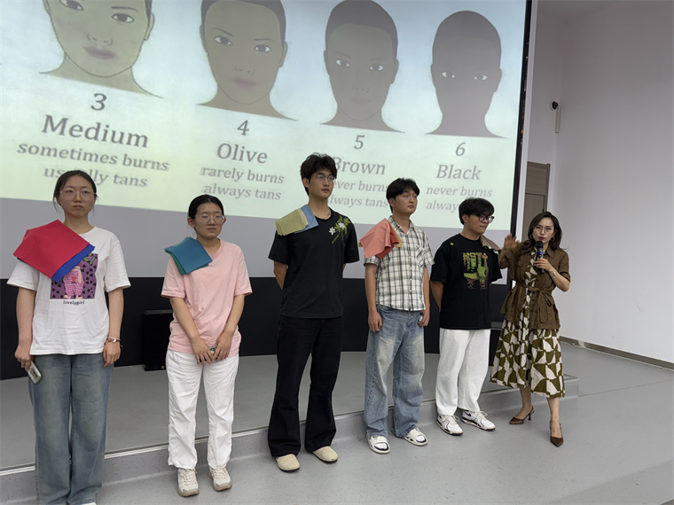 讲座过程中,姜老师采用案例对比和现场互动的方式,为大家具体分析了五官面貌、肤色变化、骨感大小、光影妆发等因素影响着装形象以及待人感受,希望大家能够灵活运用,找到适合自己的色彩进行搭配,提升自己的美学内涵。