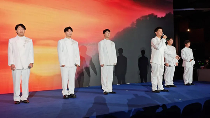 当天,影视学院执行院长李建军带领播音与主持系教师,与景涛、何子卿、刘佳武、冯永豪、李启元、霍佩帆6名播音与主持艺术专业同学精心准备的朗诵节目《光的赞歌》闪亮登场。在舞台上,同学们以极具感染力的声音,生动诠释了作品的深刻内涵,展现出扎实的专业功底和艺术表现力,将播音与主持艺术专业的特色——声音塑造、情感表达和舞台演绎完美融合,赢得了现场观众的阵阵掌声。这不仅是一场艺术的展示,更打通了兄弟院校专业之间的互动交流渠道,促进了不同院校间在播音与主持艺术领域的思想碰撞和经验共享。