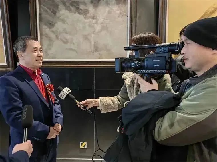 项目负责人、800cc全讯白菜网主站艺术学院院长马延岳在展区接受媒体采访