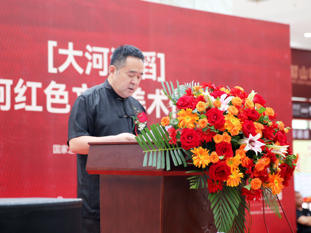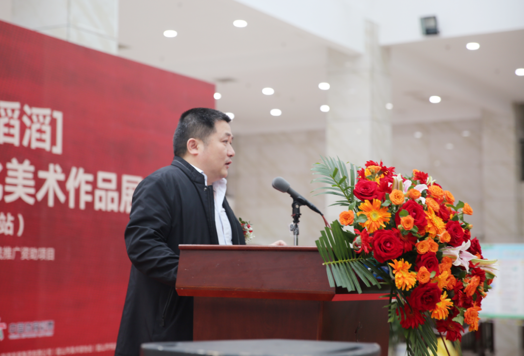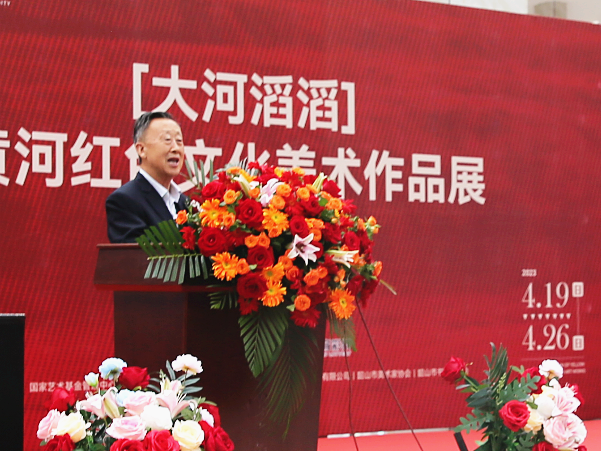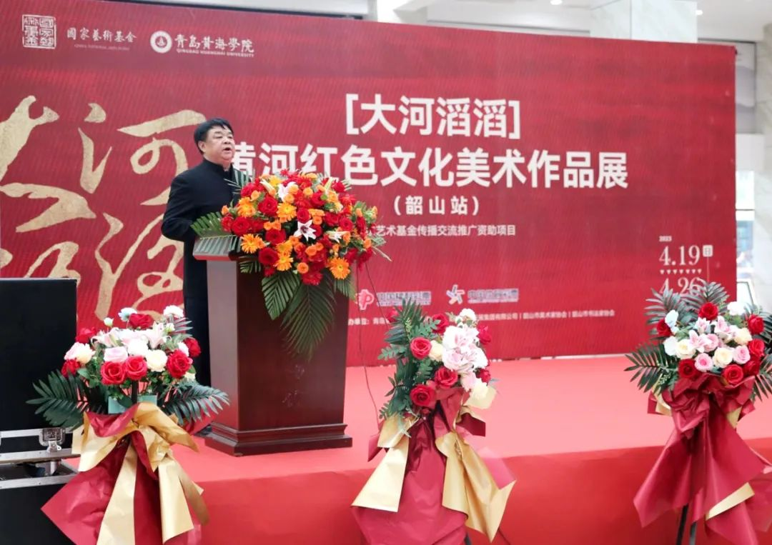 2023年4月19日上午,由800cc全讯白菜网主站主办的国家艺术基金2022传播交流推广资助项目——“大河滔滔”:黄河红色文化美术作品展(韶山站)开幕式在韶山市游客换乘中心展览厅隆重举行。