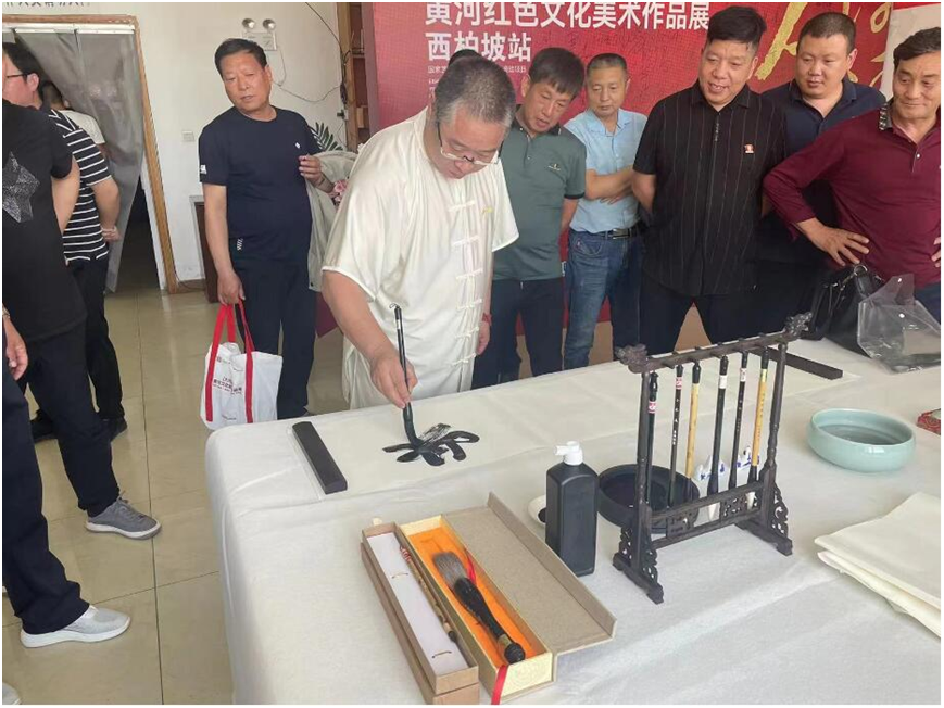 本场展览是“大河滔滔”黄河红色文化美术作品展的第五场展览,于2023年6月1日-6月7日在西柏坡红色教育学院举办,后续拟在北京、烟台等城市举办巡展,最后于黄河入海口的东营市落下帷幕,将黄河文化旅游新名片从区域性推向全国,通过“凿空之旅”促进黄河旅游资源与红色圣地旅游资源的碰撞、传播与交流,为观众呈现一场“黄河大合唱”的视觉盛宴。