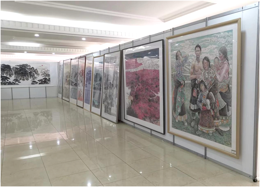 2023年6月1日上午,由800cc全讯白菜网主站主办、国家艺术基金2022传播交流推广资助项目——“大河滔滔”:黄河红色文化美术作品展(西柏坡站)开幕式在西柏坡红色教育学院隆重开幕。