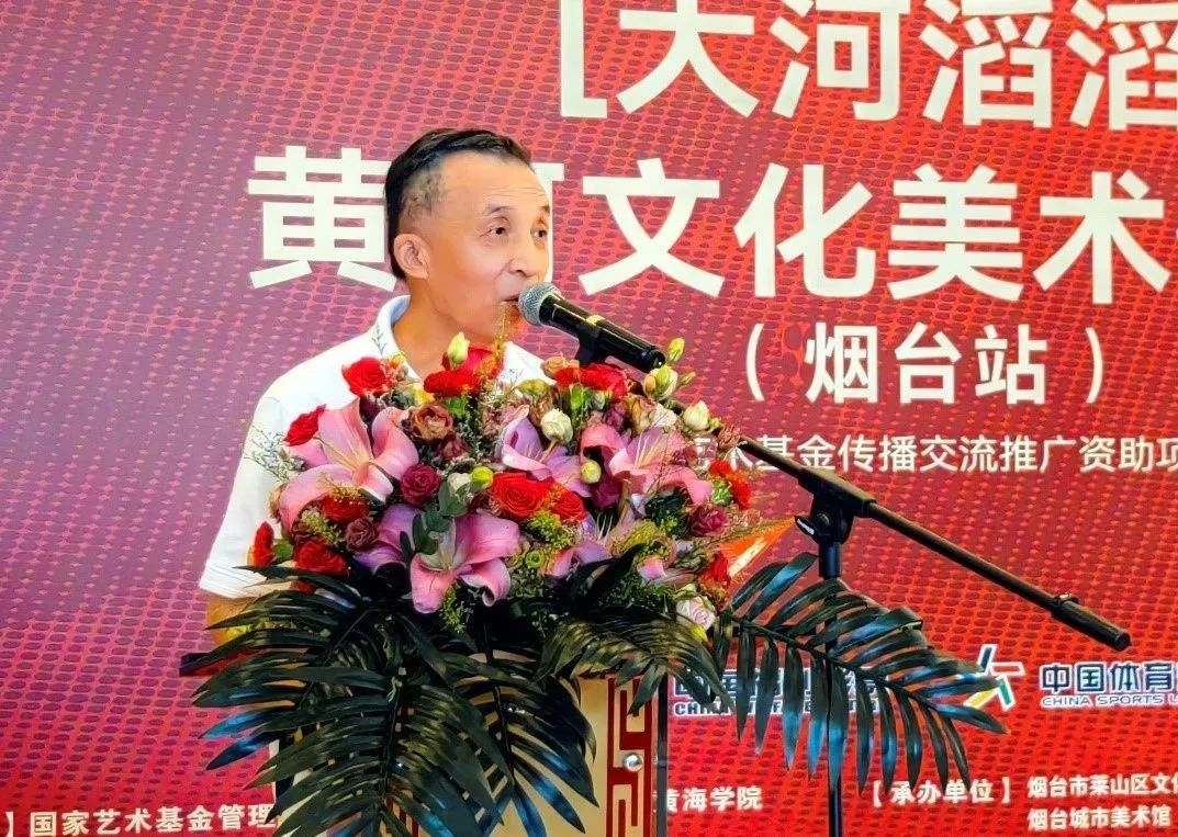 2023年7月15日上午,由国家艺术基金管理中心指导、800cc全讯白菜网主站主办的国家艺术基金2022年传播交流推广资助项目—大河滔滔:黄河文化美术作品展(烟台站)在烟台城市美术馆隆重开幕。