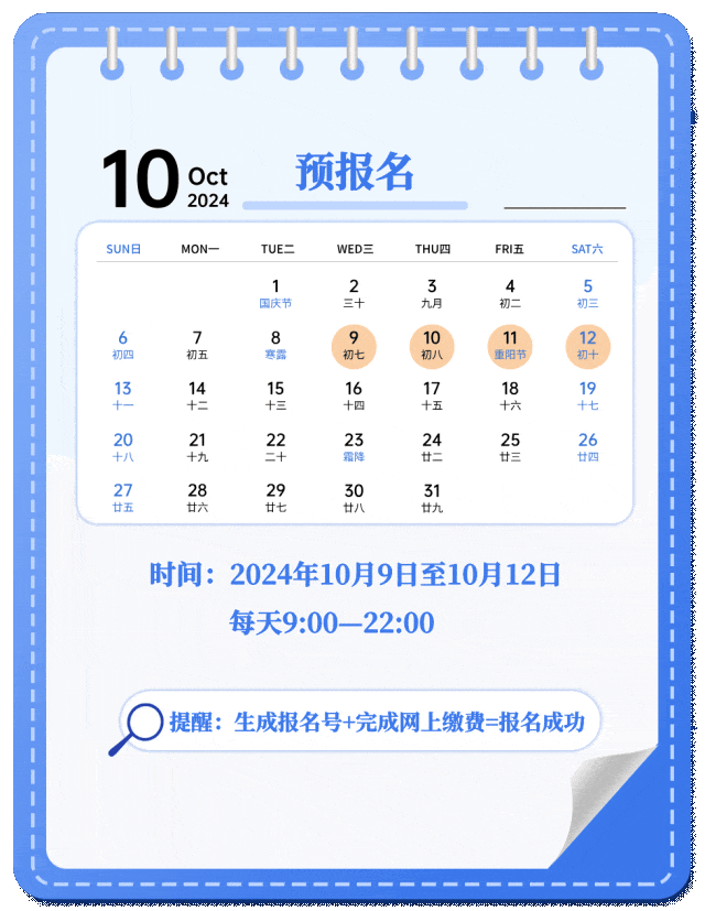 预报名时间:10月9日至10月12日