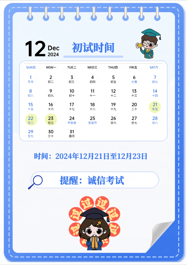 考试时间:12月21日至22日