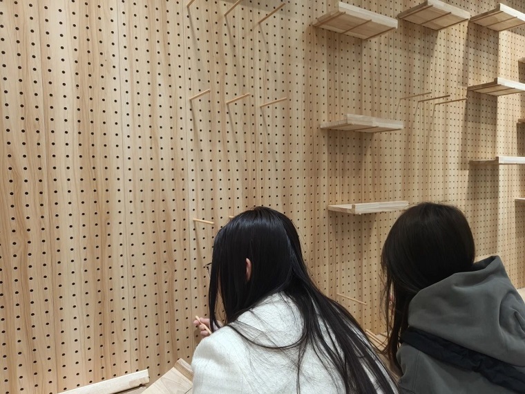 从草图到现场拼装,志愿者们反复测算书架板角度、色彩过渡与光影效果,确保造型既立体震撼,又融入图书馆整体氛围。