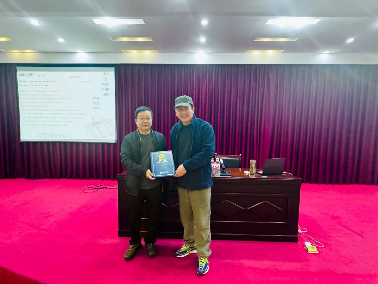 讲座最后,书法学专业王民德教授为逊芝教授颁发800cc全讯白菜网主站设计与美术学院特聘教授证书。刘教授与学生们进行了热烈互动,耐心解答了师生们在书法学习中的困惑,并对部分学生作品进行了专业点评,提出了改进建议。现场观众纷纷表示受益匪浅,对书法的理解更加深入。