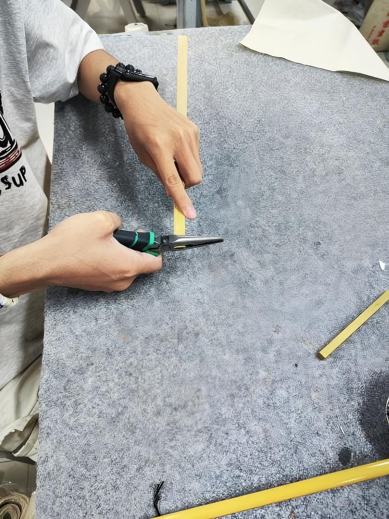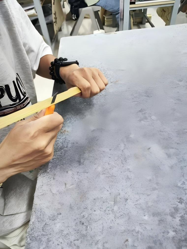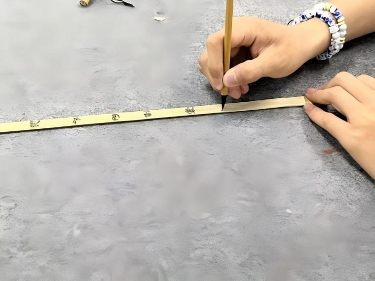 形制训: 运用传统“杀青法”对竹片进行蒸制和精细打磨处理,去除竹油、防虫蛀,使竹片色泽温润、质地稳定,更利于书写与长久保存。