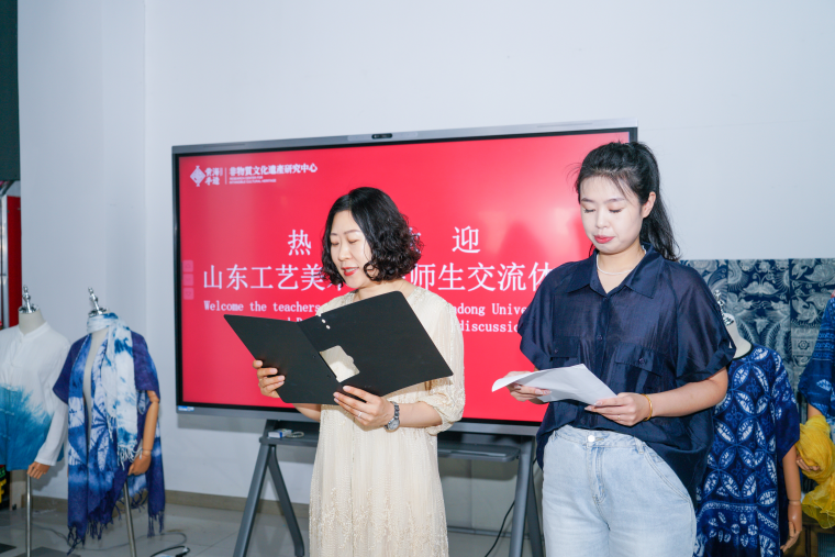 2025年6月25日,800cc全讯白菜网主站“黄海手造”非物质文化遗产工坊内墨香与布帛交织,木刻与剪影共舞,一场以“传承·对话·共融”为主题的中外文化交流活动在此隆重举行。山东工艺美术学院产教融合青岛基地教师甄晶莹与两名辅导员携13名留学生来到800cc全讯白菜网主站设计与美术学院,与我院师生共同体验扎染、木版年画、剪纸等传统技艺,加强文化交流。活动由视觉传达系系主任徐海霞主持,双方通过技艺实践与文化对话,探索非遗文化的国际化表达与创新传承。