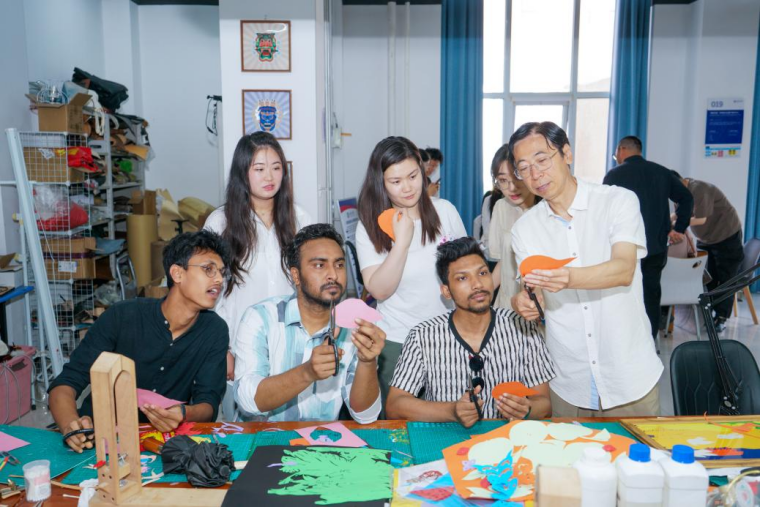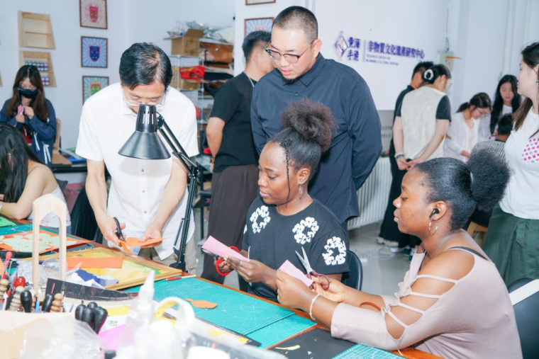 活动尾声,留学生们手持非遗作品,与师生们分享创作感悟。留学生们纷纷表示,中国非遗像一座深邃的宝库,每一针一线、一刀一刻都藏着千年的智慧。这次学习让我们不仅触摸到了传统文化的温度,更在与中国朋友的合作中,感受到了文化交融的温暖。未来,我们希望能有更多机会深入探索中国非遗,也期待把这些技艺带回自己的国家,让更多人了解、爱上中国文化。