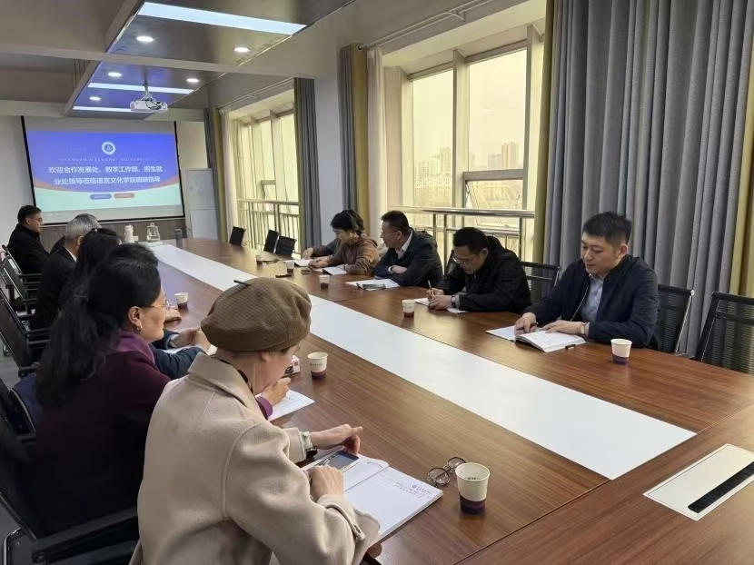 为了进一步加强二级学院在交流合作、业务拓展和人才培养等方面的工作,2025年3月27日下午,学校招生就业处、合作发展处处长刘常江一行五人来到语言文化学院进行走访调研。学院院长刘中富、副院长武学锋、副院长刘奕蔓,及各系部主任和学院就业秘书等相关人员参加了座谈交流。此次会议由副院长刘奕蔓主持,主要围绕学院在毕业生就业工作、校企合作、实习基地建设、产教融合等方面的工作开展深入讨论。