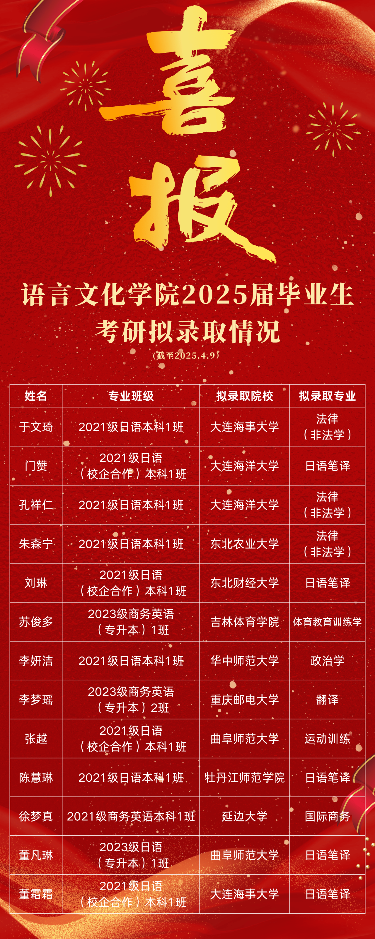 星光不负赶路人,岁月不负追梦者。经过无数日夜的沉淀与拼搏,语言文化学院2025届学子在考研征途上再创佳绩!