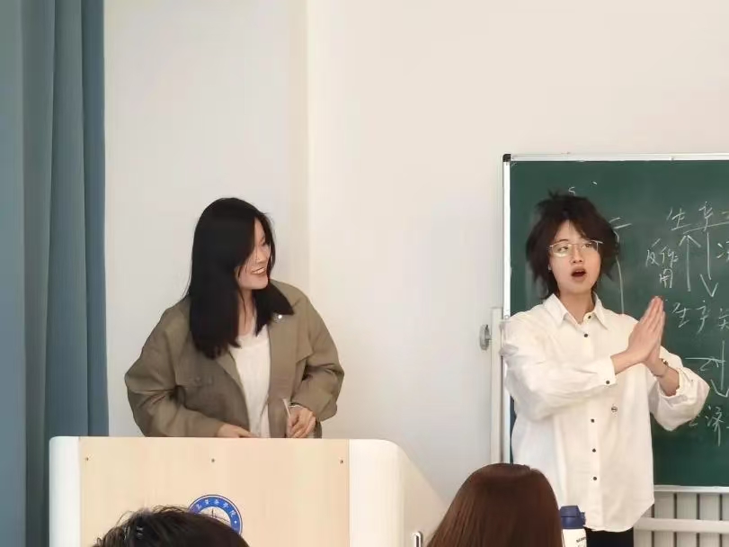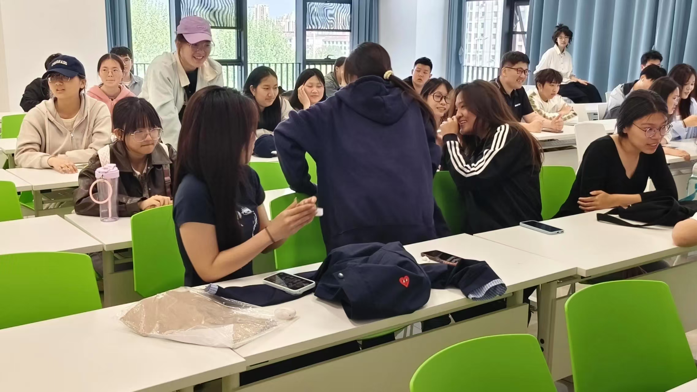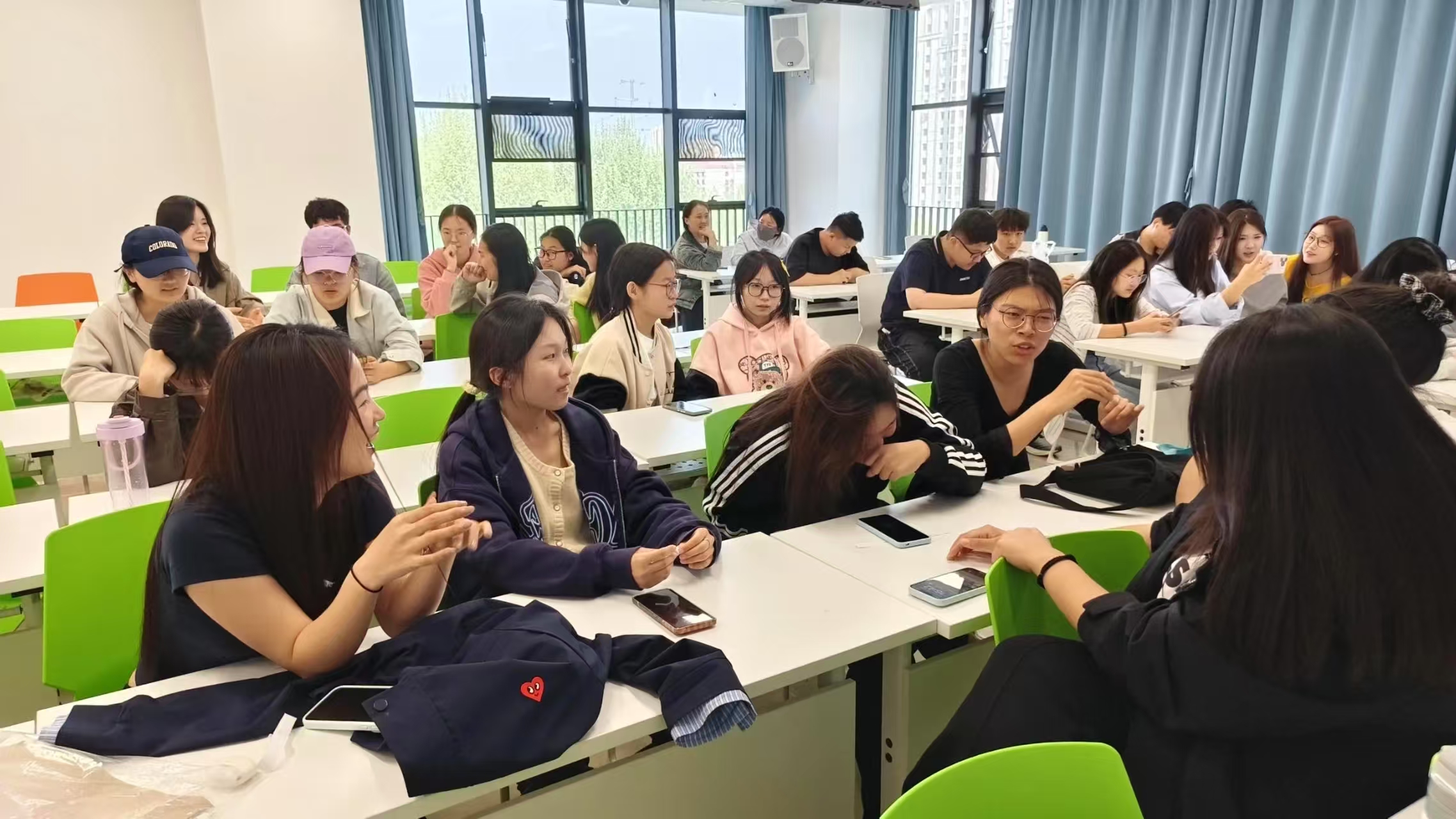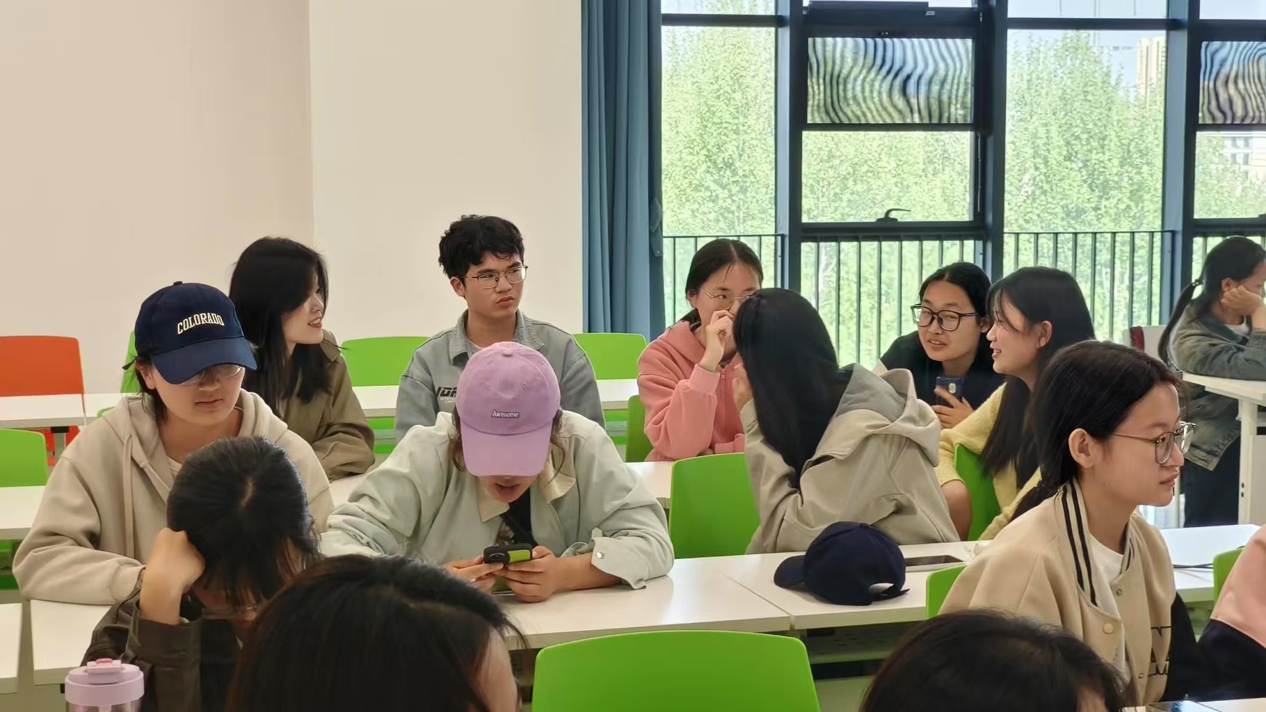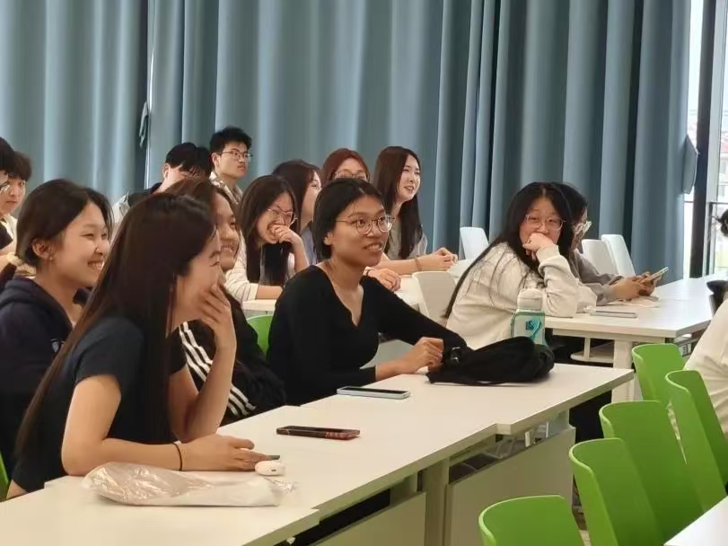随后,曹晓玮老师引导大家展开讨论,并分享了自己喜爱的电影类型。接着,在“耳语游戏”(The Whisper Game)中,同学们将一句话轻声传递给下一位同学,直到最后一位同学大声说出这句话。这不仅考验了同学们的英语记忆力和表达能力,还帮助他们积累了相关词汇。