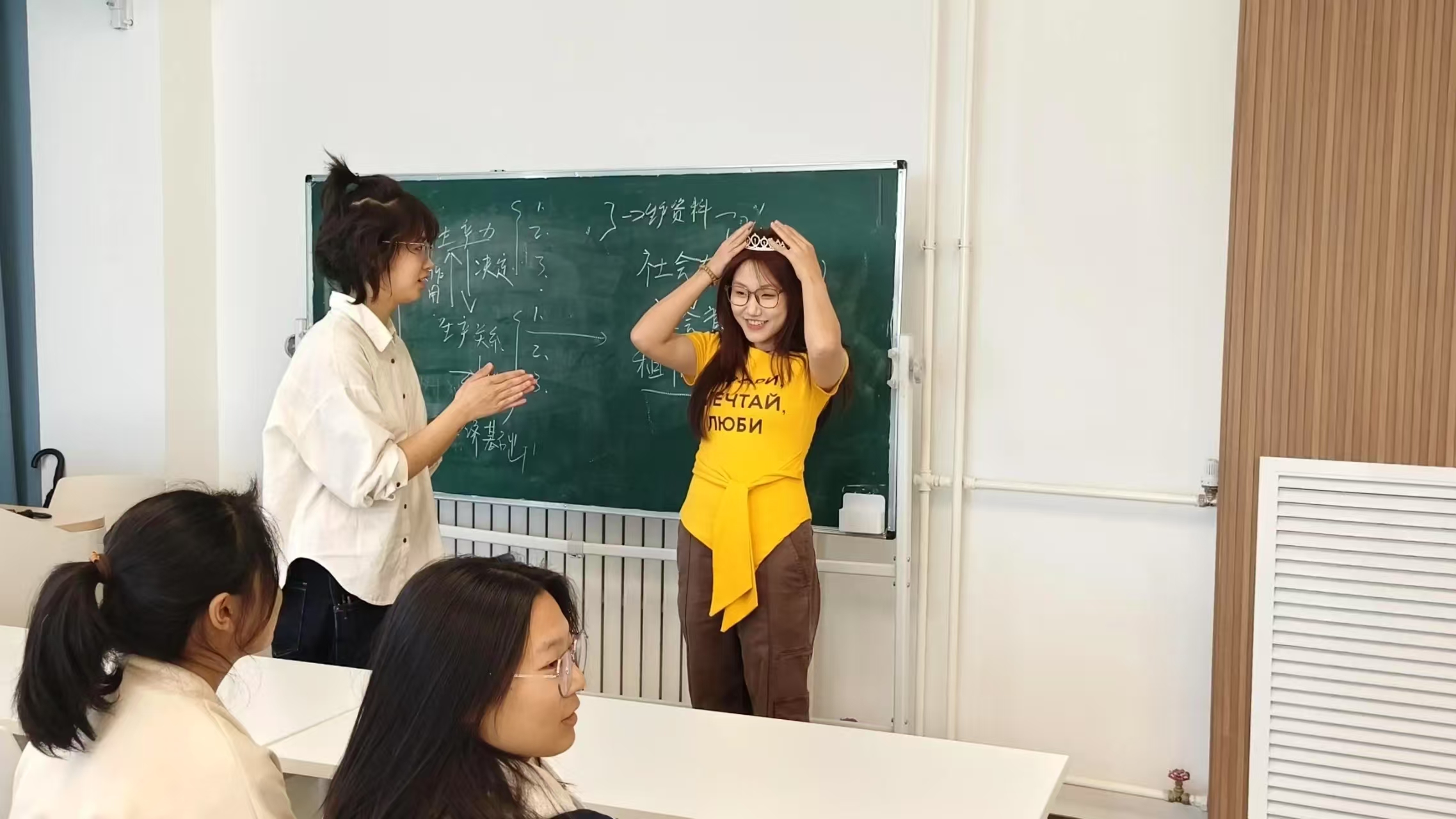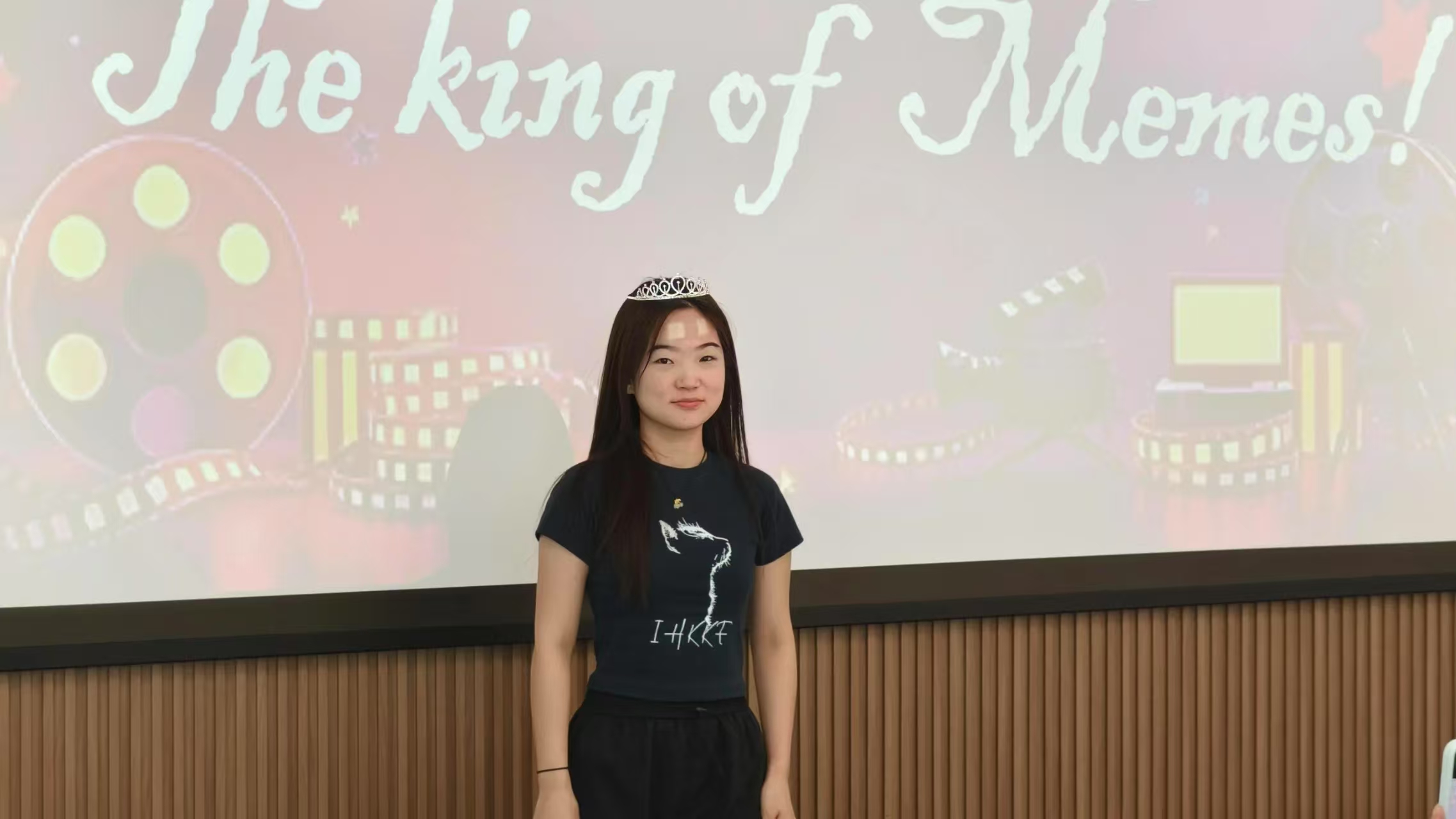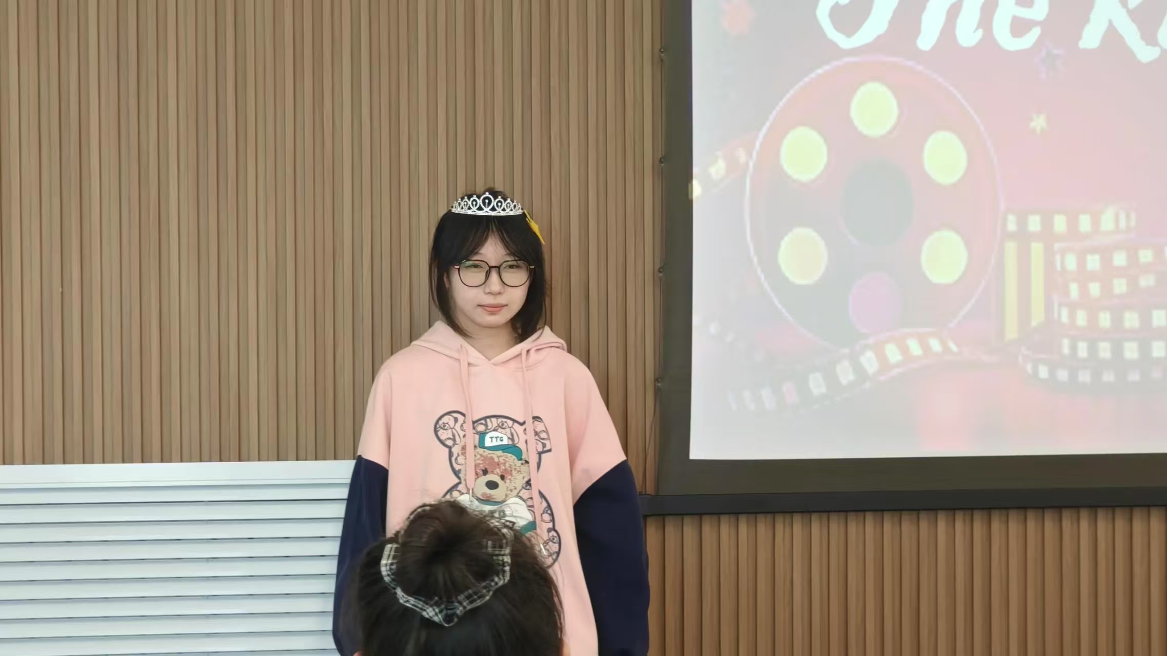 活动伊始,孟嘉慧同学以充满活力的开场白带领大家进入第一个游戏——“Who is the King of the Meme”。同学们需凭借敏锐的观察力和丰富的电影知识,识别经典的电影场景与台词。同学们热情参与,沉浸在电影“表情包”中。最终,四位同学脱颖而出,荣获“King/Queen of the Meme”,并戴上了精美的“皇冠”