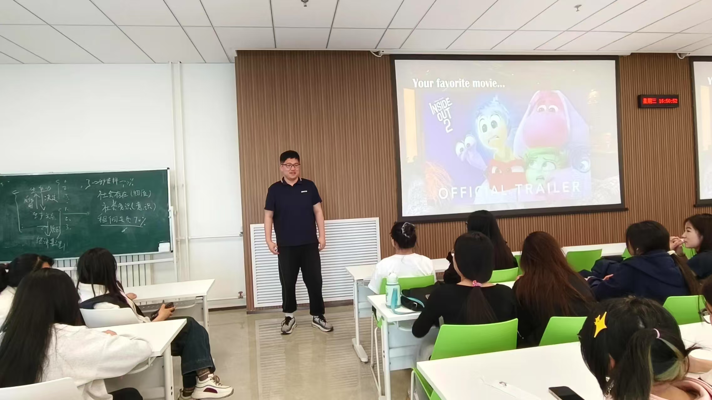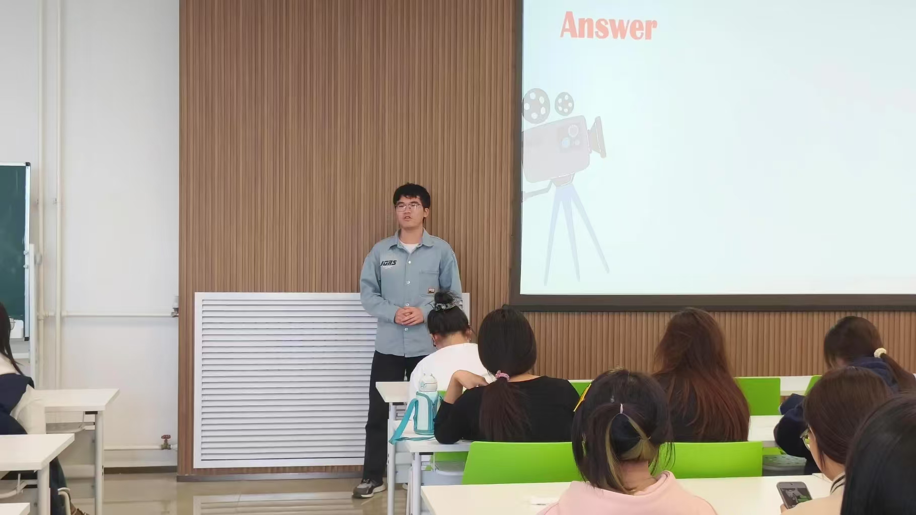 4月23日下午16点,语言文化学院本学期第3次英语角——“银幕背后的世界”(World Behind the Screen)在知信楼133教室成功举办。活动由英语系教师曹晓玮和2024级商务英语本科3班孟嘉慧同学主持,现场气氛热烈、笑声不断。