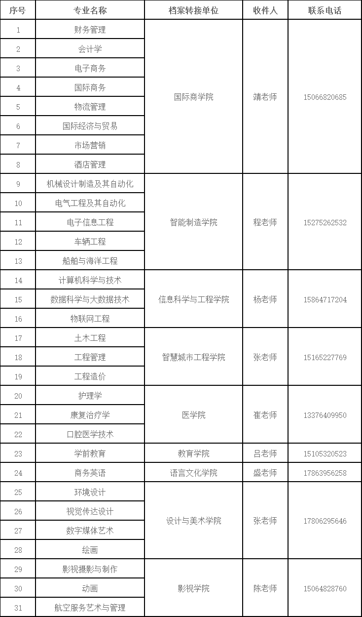 各专业档案转寄地址:青岛西海岸新区灵海路1145号 邮编266427