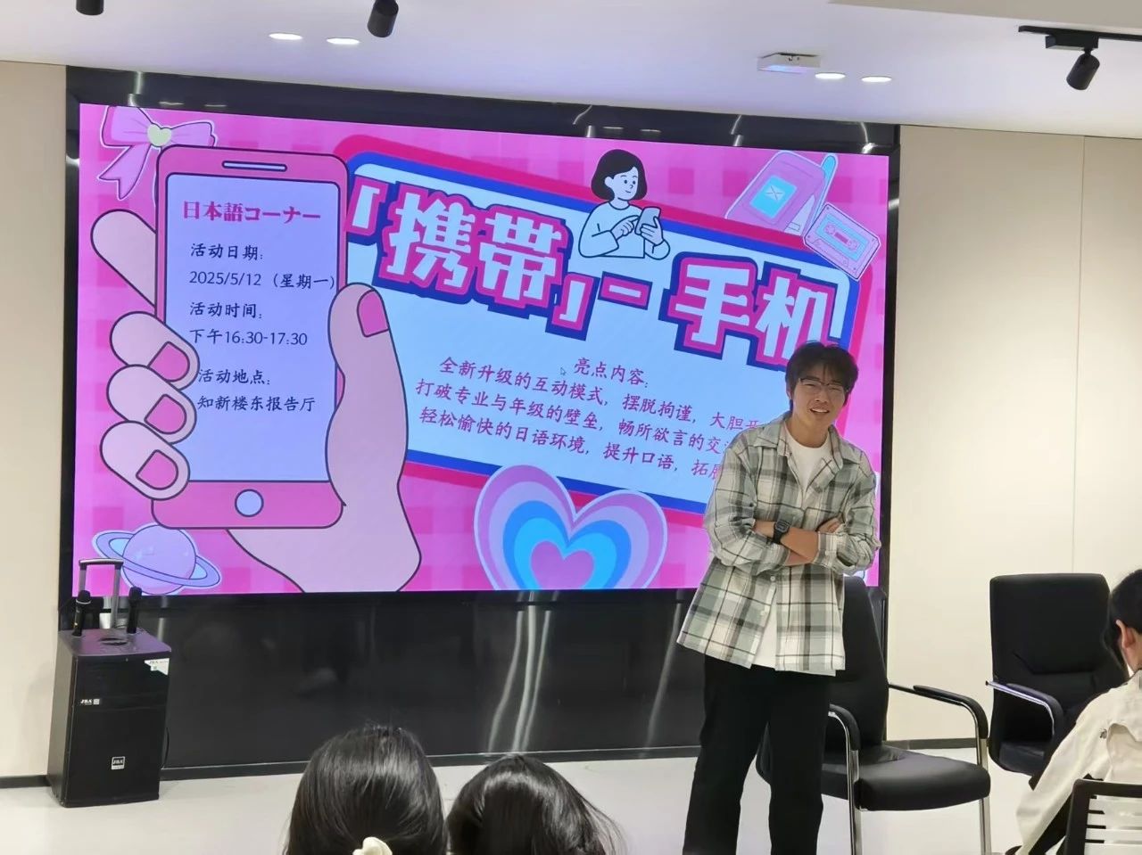 5月12日下午,以“手机”为主题的第五回日语角活动在知新楼东报告厅圆满举办,吸引了50余名师生热情参与。科技与语言的碰撞,笑声与思考的交织,为初夏校园增添了一抹亮色。
