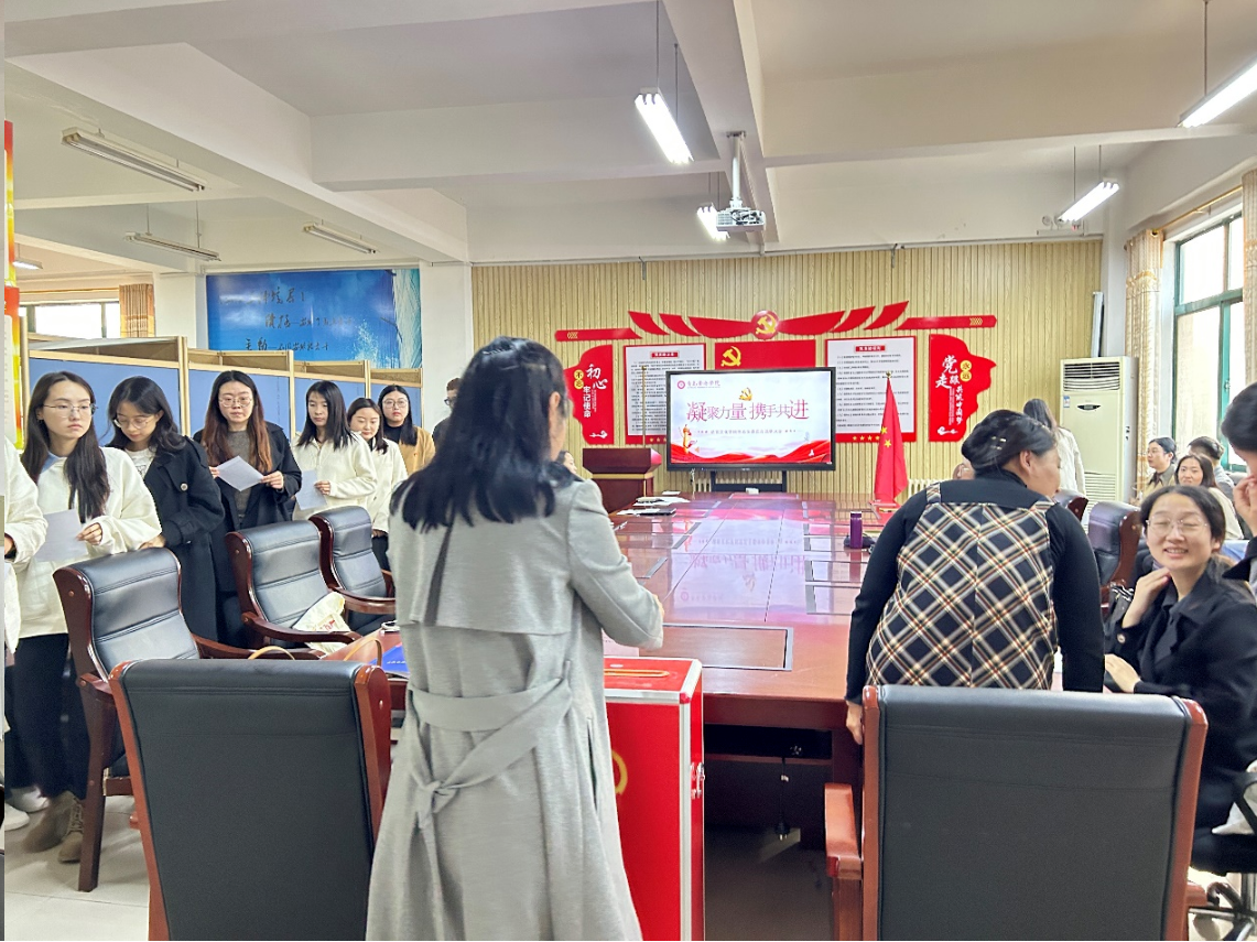 党总支书记刘奕蔓代表新一届党总支领导班子郑重表态:将进一步强化政治理论学习,不断提升履职能力与管理水平,促进党建与业务深度融合;坚持民主原则,维护班子团结一致,努力营造廉洁自律、积极向上的工作氛围以及和谐稳定的发展环境,为学院各项工作的稳步开展提供坚强组织保障,推动学院迈向新高度。