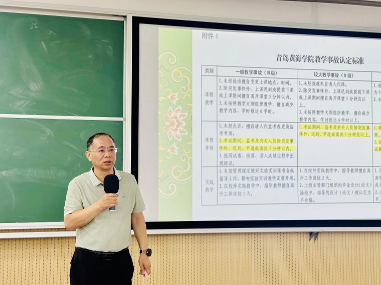会议最后,武学锋副院长进行总结发言。全体教职工务必提高思想认识,从监考到阅卷的每一个环节,都要严格遵循流程规范操作,按要求及时完成成绩录入与存档工作。同时,他结合教学事故的典型案例和认定标准指出,任何违反考试纪律、失职失责的行为,将严格按照学校相关规定认定为教学事故并严肃处理。希望全体教职工以高度的责任感和使命感,共同保障期末考试工作圆满完成。