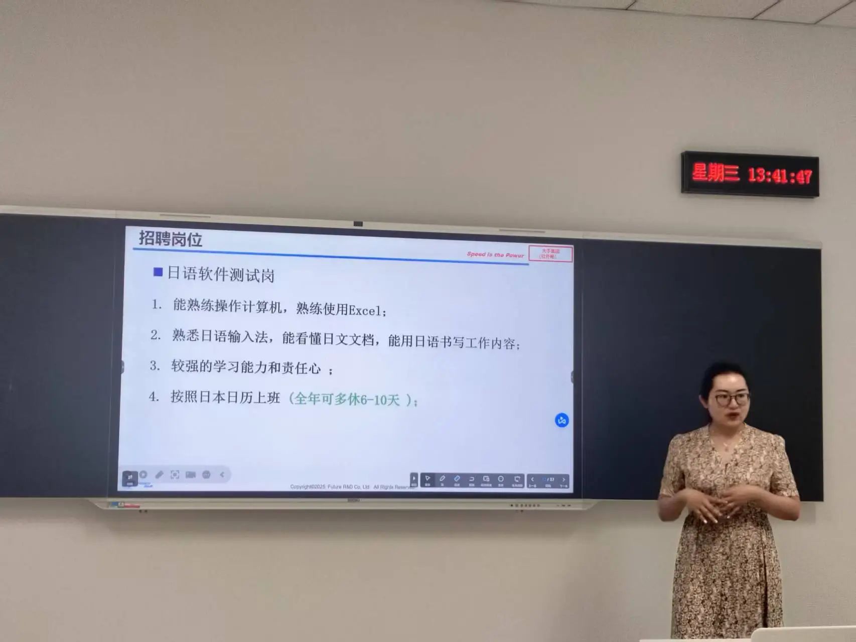 宣讲会深入阐述了实习的多元价值。学生不仅能积累职场经验、熟悉日企的工作模式与文化,更能显著提升“日语+业务”与“日语+技术”的综合能力。此外,实习还提供在企业环境中实战的机会,有助于强化团队协作、执行力及日系职场特有的“报告、联络、商量”沟通方式,全面提升问题解决能力和计算机应用实战水平。