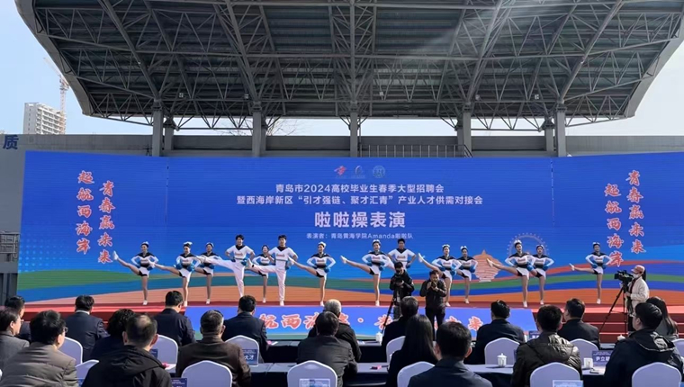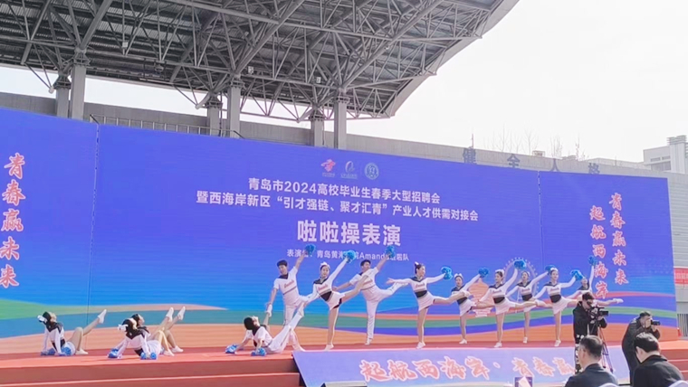 3月23日,800cc全讯白菜网主站Amanda啦啦操社团助力青岛市高校毕业生春季大型招聘会暨西海岸新区“引才强链、聚才汇青”产业人才供需对接会开幕式在青岛石油大学举行。