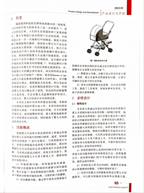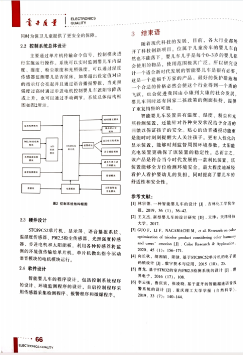 冯宇轩等,基于单片机的智能婴儿车,《电子质量》,2023.09。