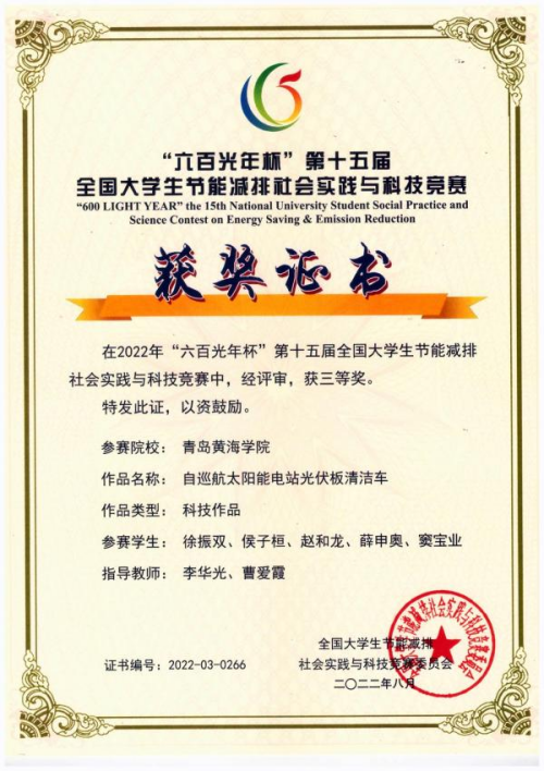 (5)全国大学生节能减排社会实践与科技竞赛