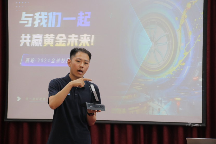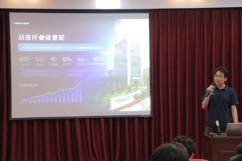 赛轮集团股份有限公司高鹏经理、王昊辉经理分别从产业领域的资源优势和技术优势、人才策略、发展空间、企业课程特色、实习期间的食宿以及入职后的企业待遇、文化活动等方面为全体师生进行了详细介绍。
