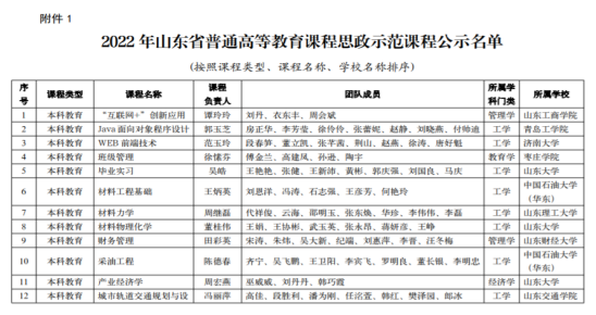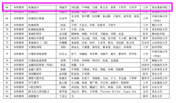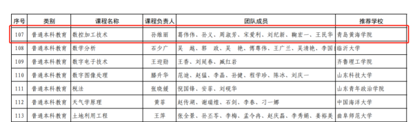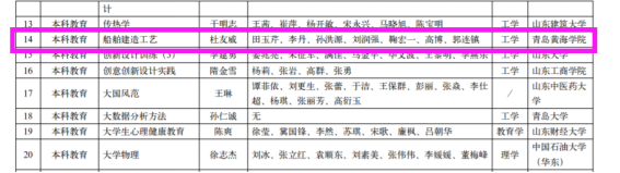 序号 课程名称 课程负责人 认定时间 1 机械设计 周淑芳 2022 2 船舶建造工艺 杜友威 2022 3 数控加工技术 孙维丽 2023